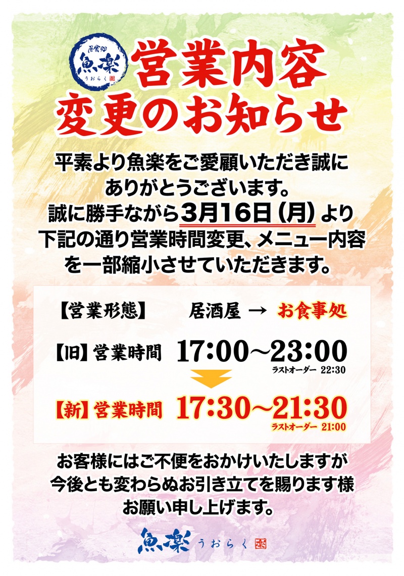 ~居食処魚楽よりお知らせ~